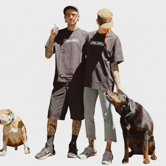 Mid-heavy, unisex, 275 GSM, oversized, Premium Qualität 100% Baumwolle Shirt in schwarz mit dem Logo in weiss. Der Stoff ist robust aber weich und warm. Oversized, also breit styliert für einen "Loose Fit" mit viel Bewegungsfreiheit.